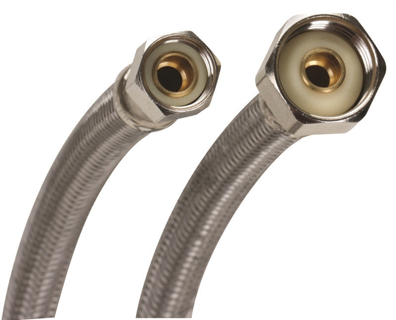 Exceptionally flexible, high strength, reinforced vinyl jacket. Extra-long stainless ferrules with radial crimp for more security. Non-toxic core resists chlorine and chloramines. Captive cone washers seal tightly. Easy to grip, heavy-duty, nickel-plated, brass hex nuts. Meets IAPMO standard, SBCCI, CSA, NSF-61-9, A112.18.6 and UPC.