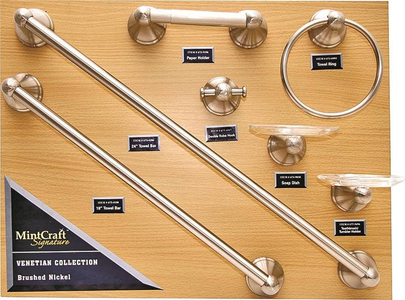 Each kit includes 4 - 18" x 24" boards and a full set of templates and labels for all families of Mintcraft and Mintcraft Signature bath hardware. BATH HARDWARE NOT INCLUDED.