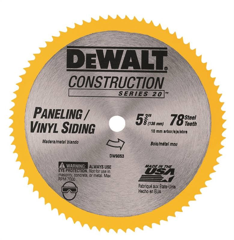 Ultra thin kerf, cordless steel saw blades are engineered to optimize the cutting performance of all DeWalt 5-3/8" and 6-1/2" cordless saws. For cutting paneling, plastics, vinyl siding and other thin materials. Alternate set teeth, -10/45 degree hook angle, .059" kerf.