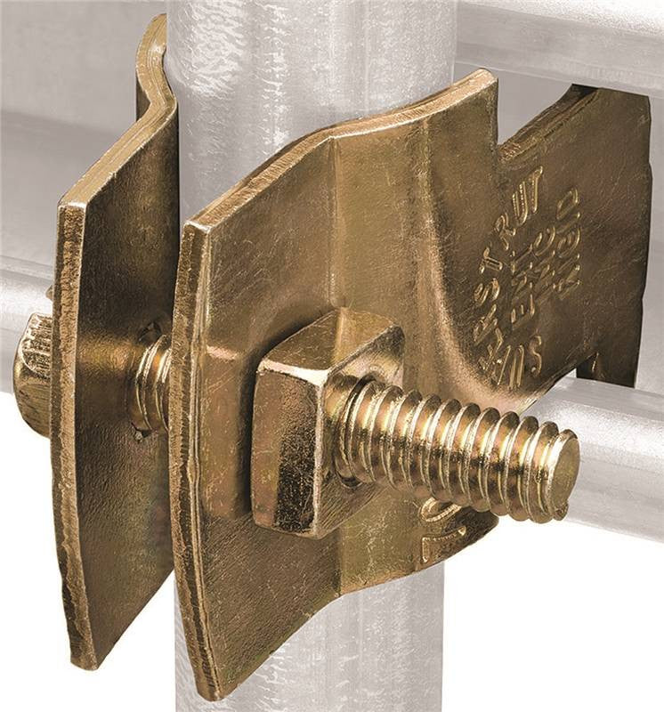 Pipe straps hold conduit and pipes in channel. They are inserted along the slot side of the channel and twisted into place. Pre-assembled with locking slot / hex head bolt. Gold-galvanized corrosion free finish.