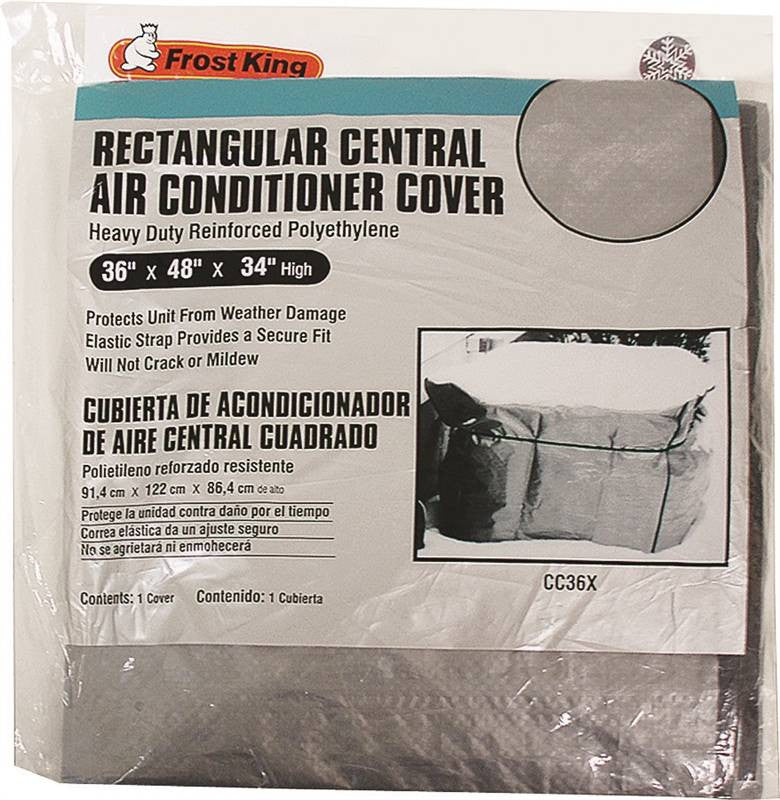 Tall made of reinforced vinyl tarp material with tie-down straps. Protects unit from weather damage. Elastic strap provides a sure fit. Will not crack or mildew.
