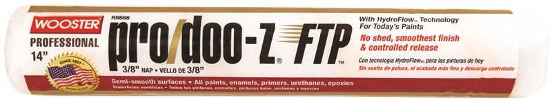 No shed and high density for flat, eggshell, satin, semi-gloss, gloss, enamels, primers, urethanes, epoxies. HydroFlow technology provides controlled release to improve paint flow. White fabric with a double golden pinstripe for smoothest finish, greater capacity. Green double-thick polypropylene core resists water, solvents, and cracking.