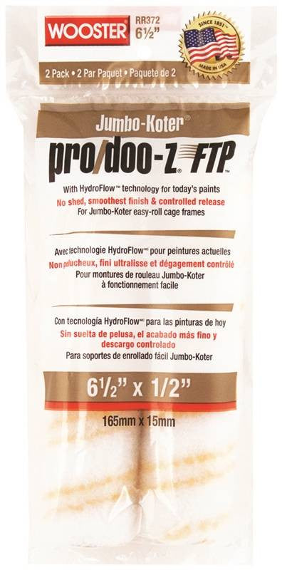 No shed and high density for flat, eggshell, satin, semi-gloss, gloss, enamels, primers, urethanes, epoxies. HydroFlow technology provides controlled release to improve paint flow. White fabric with a double golden pinstripe for smoothest finish, greater capacity. Green double-thick polypropylene core resists water, solvents, and cracking.