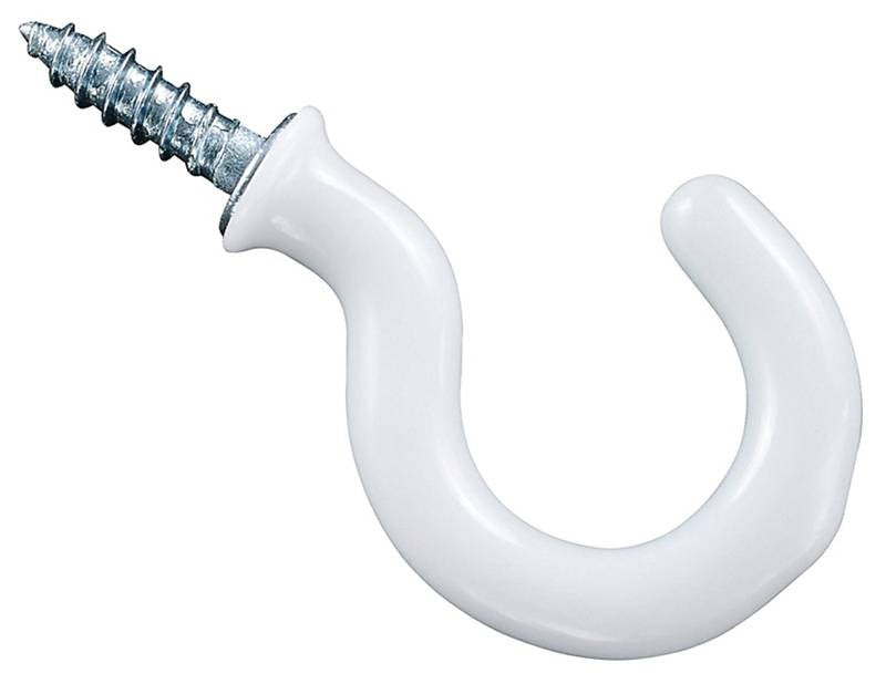 Designed for hanging home and industrial products. Sharp screw point bites into wood easily and quickly. For interior and exterior applications. Safe working load: 10 lbs. Bagged.