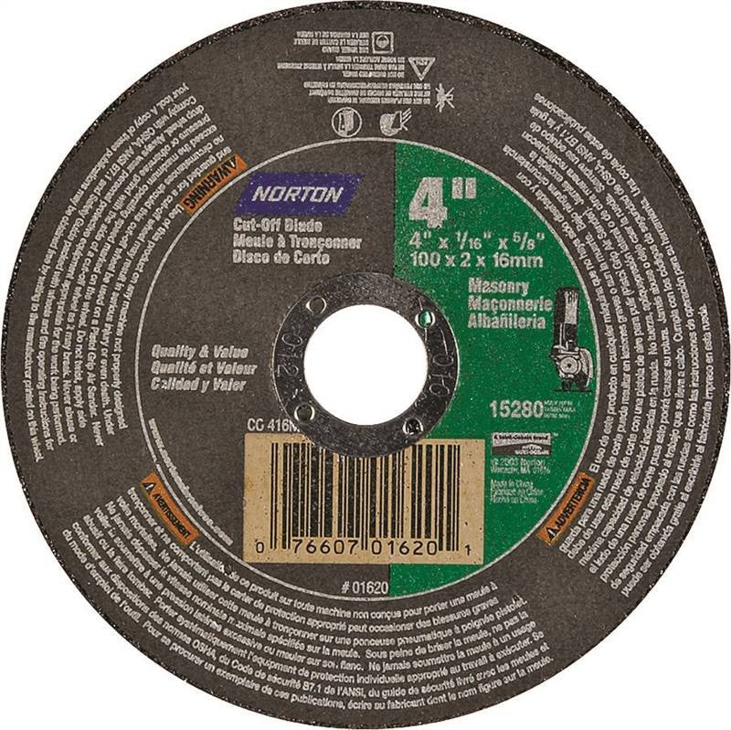 For traditional cut-off applications. Thin design for cleaning, slotting and cutting concrete brick, cinder block, cement and patio stones. Supplied with full fiberglass reinforcing. Use with right angle grinders. Type 1 center. 1/16" blade thickness.