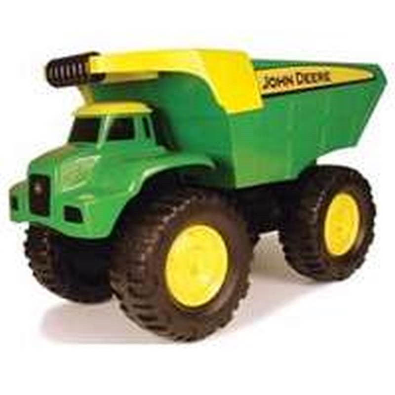 Oversized ultra durable dump truck. Ideal for outdoor sandbox and other areas inside or out for hours of play. Tough real steel dump box is completely functional and features an easy to use handle. Wheels and cab of truck are made of tough plastic for rugged play. For ages 3 and up. Dimensions: 21''L x 11''W x 12''H.