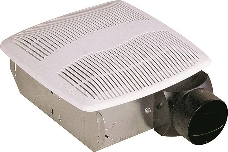 White polymeric grill. One piece polymeric wheel. Plastic collar for 3" duct connection, comes complete with built in non-metallic back draft damper for quiet operation. Rated for ceilings insulated to R-40. UL Listed for installation over a tub or shower on a GFCI circuit. HVI2100 Certified. Grill Dimension: 10" x 9-1/2". Housing Dimension: 7-1/4" x 7-1/4" x 3-3/4".
