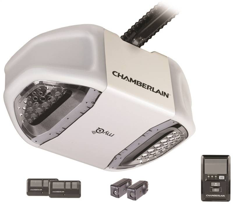 This MyQ smartphone enabled garage door opener includes a powerful, 3/4 HP motor with industrial-strength chain drive and includes (2) 3 button remote controls, wireless keypad and delivers 200 watts of light for added safety; MyQ smartphone app control - monitor and control your garage door with your smartphone; MyQ Gateway (CIGBU - sold separately) require for app control; motion-detecting control panel programs new remotes and MyQ accessories; easily sets timer-to-close and automatically turns lights on when motion is detected. DO NOT WORK with extension kits.