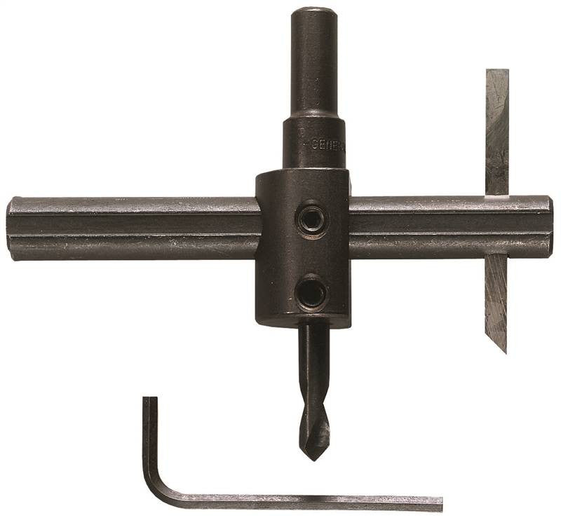 Body constructed from heat treated tool steel. The quick adjusting hex screw allows you to cut exact holes from 1" to 6" diameter. All adjustments can be made with hex wrench (included).Use with drill press only, replaceable cutting blade and 1/4" pilot drill (use replacement #4/5 blade and pilot Bit #5/6/55).