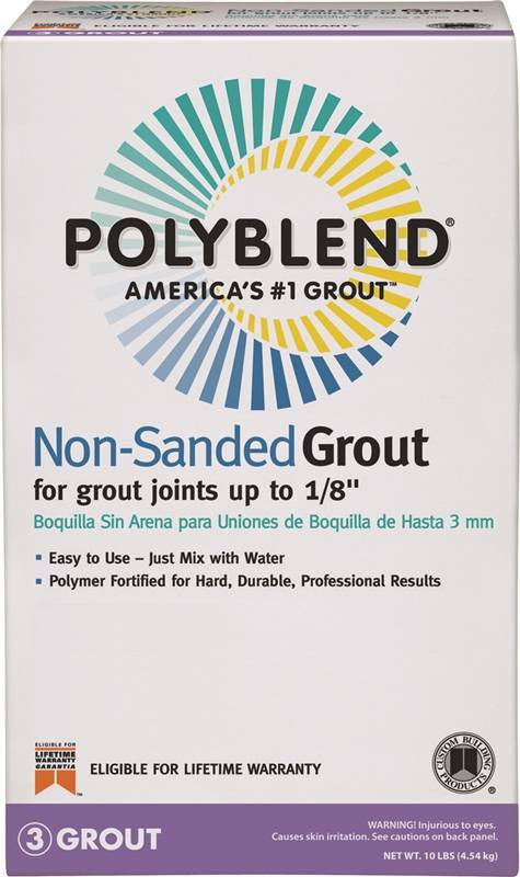 Portland cement dry grout used for joints up to 1/8" wide. For highly glazed ceramic tile or highly polished marble or natural stone that can be scratched by sanded grouts. Use on floors, countertops, walls, ceilings, showers, fountains and pools. Non-shrinking and durable. Meets ANSI A118.6 specifications. Rated (ASTM C67) for residential to extra heavy commercial use.