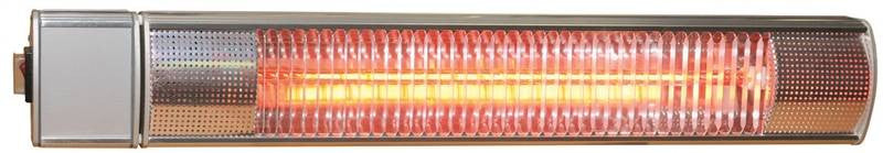 Wall or ceiling mount heat source, for commercial or residential use. Heater casing and protective cover are constructed of durable anodized aircraft aluminum, and minimal maintenance is required. Operation is silent and odorless, no combustion or chemicals are involved. Heater emits a warm ambient glow that makes outdoor spaces comfortable during cool, windy weather. IP65 rated for use in wet environments.