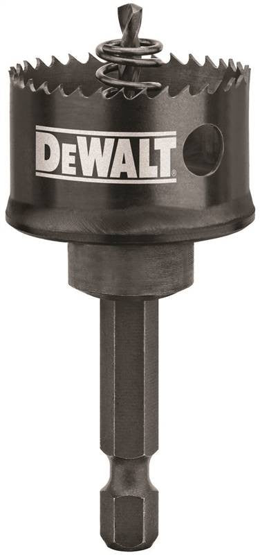 Fast metal drilling speeds for double tooth design. Easy plug removal for ejection spring. Raised shoulder helps to prevent the drill from breaking through the material when hole is complete. Thin-walled design optimum metal drilling efficiency. Sharper tooth geometry. Thick, hardened backing plate. Deep-cut style. Increased high speed steel height