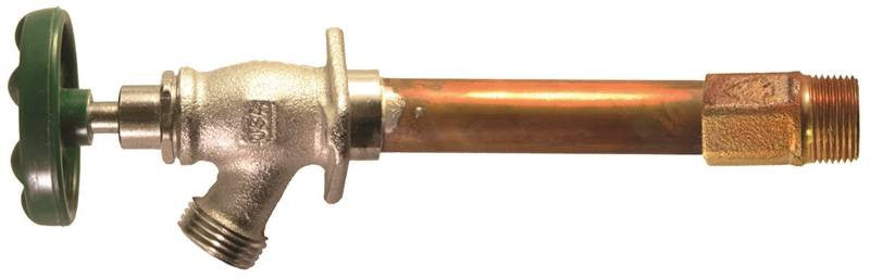 1/2" MIP & 1/2" Sweat. Solid flange permits easy anchoring to frame buildings. Constructed of all brass and type L copper, 1-piece O-ring bonnet & rubber coated oval handle.