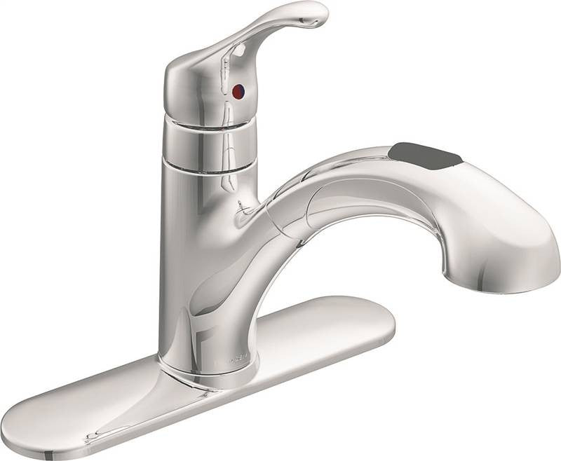 Metal construction with Hydrolock quick connect installation. Pullout spray with 68" braided hose. 1/2" IPS connections will accept standard ball nose connection for 3/8" tubing. Lever-style handle. Temperature controlled by 120 degree arc of handle travel. Spout receptor rotation is 120 degrees. Operates with less than 5 Ibs. of force. Operates in stream or spray mode in the pullout or retracted position. Flow is limited to 1.5 gpm max. Designed to install thru 1 or 3 holes 1-1/4" (32mm) min. Third party certified to CSA B-125, ASME A112.18.1M, NSF 61 Section 9, California Proposition 65, ANSI A117.1 and all applicable requirements referenced therein. ADA compliant. The backflow protection system in this device consists of two independently operating check valves, a primary and a secondary which prevent backflow.