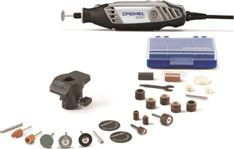 Lightweight, comfort grip housing with variable speed, circle cutter/straight edge guide. Specs: voltage 120/AC, 50-60/Hz, 5,000 to 35,000 RPM, 6 ft. cord. Includes: storage case and 24 accessories.