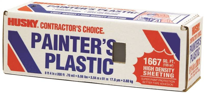 High density poly sheeting. Lightweight, super tape adhesion. For use as a overspray shield, paint drape, or multi-purpose cover. Consumer.
