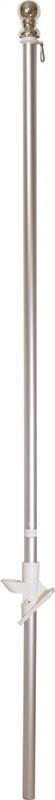 Includes a one piece brushed aluminum flagpole with a 2-position nylon bracket. 360 degree ball bearing rotation. It is intended for use with sleeved or grommeted flags.