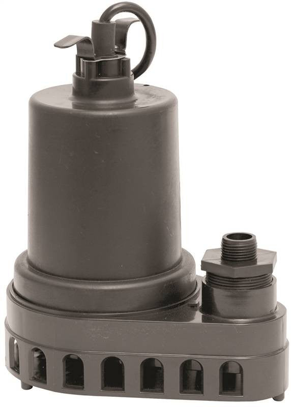 Continuous duty, thermally protected - split capacitor motor. Pumps will lift water up to 25' of vertical height. Tough thermoplastic construction. Large 1-1/2" discharge for high capacity pumping. Garden hose adapter included. Can be used as a sump pump by adding an optional float switch. 4.9 amps, side sdischarge, stainless steel impeller, handles 3/8" solids, 10' cord. Pumps up to 55gpm/3300gph. 3 year warranty from Superior Pump.