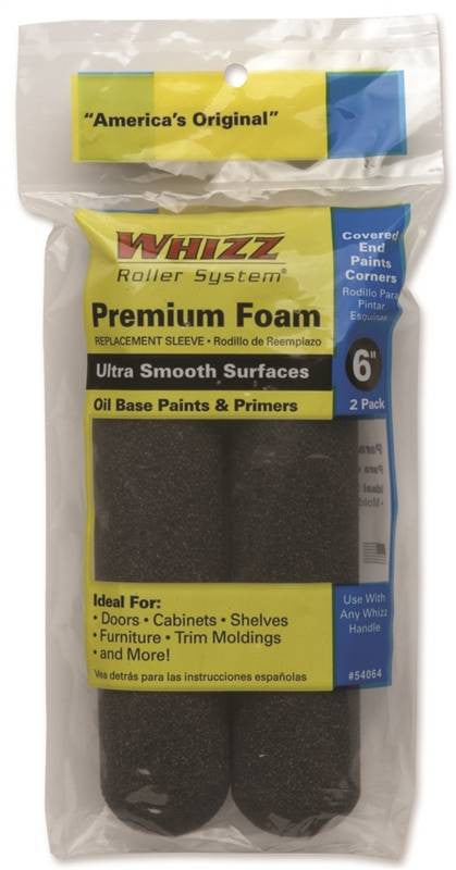 For varnishes, polyurethanes, oil enamels. Works on all whizz handles for 4" and 6". Covered end paints corners. Patent pending-concave ends. Easy clean-up. No lap marks. 55 Kilo high density black foam