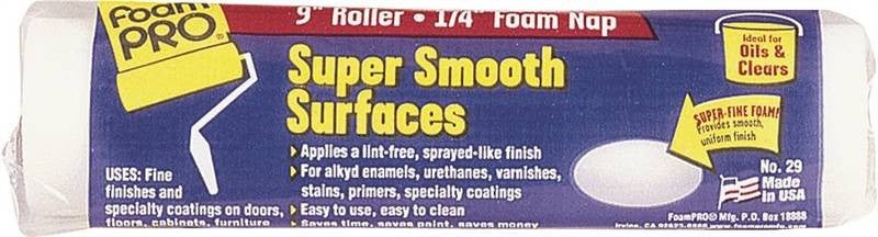 Applies a lint-free, sprayed-like finish. For alkyd enamels, urethanes, varnishes, primers, stains and specialty coatings. High-density foam. For a super smooth surface. Use fine finishes and specialty coatings on doors, floors, cabinets, furniture and more. Super-fine foam provides smooth, uniform finish.