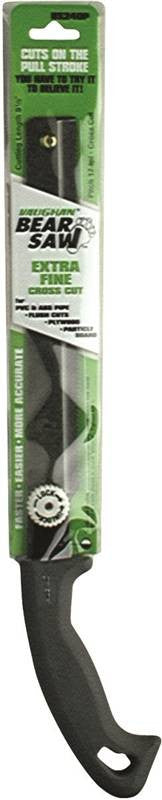 Cuts on pull stroke for easier sawing. Extra fine crosscut with thin, spring steel blades which are durable and rust resistant. Ground and impulse hardened tri edged teeth are razor sharp to cut cleanly and accurately. Saws have blade guards to protect teeth when not in use and can be quickly disassembled for convenient toolbox storage. Order item no. 7249543 for replacement blade.