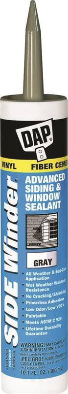 Advanced polymer formula siding and window sealants deliver excellent performance on vinyl, fiber cement, aluminum, wood siding and windows. Permanently flexible. Wet weather and low temperature application. No shrink and virtually no VOC's. Paintable. Meets ASTM Specification C920. Covers 50 lin. ft. at 3/16" dia. bead.