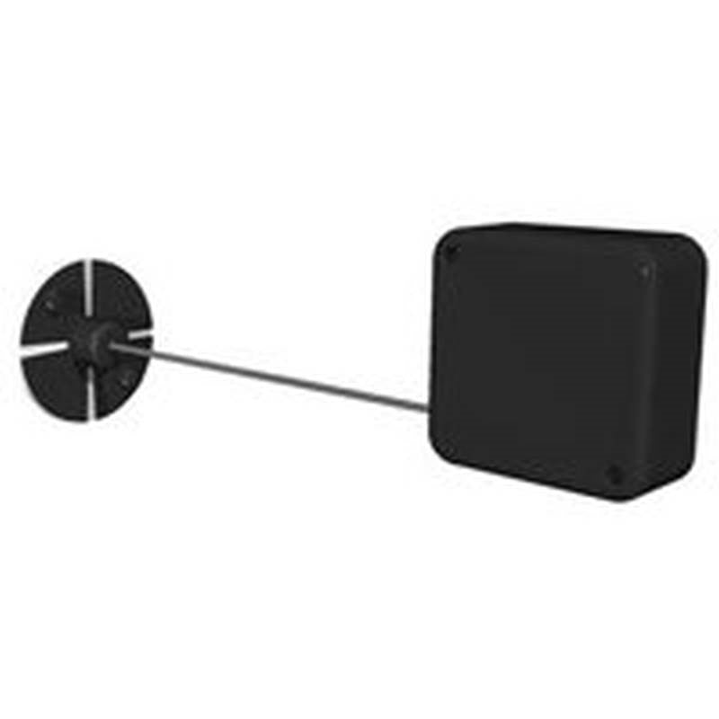 Retractable cord allows for limited distance that the product can be removed from the shelf, while providing a flexible round end to function holding a variety of different sized products. 36" long x .032" dia. Nylon coated cable.