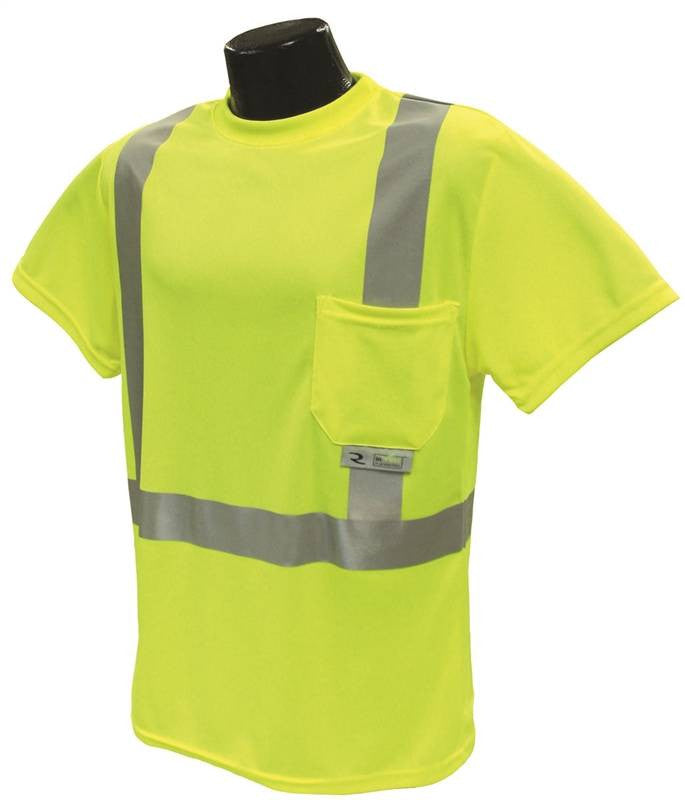 Made with "Max-Dri" Moisture Wicking Mesh Technology allowing for maximum breathability without compromising durability; the stripes are adhered by heat transfer rather than sewn on making the safety T-shirt wear much like a regular T-shirt; the front pocket does not include reflective material to allow for corporate imprints; 2" heat transfer reflective tape, 1 horizontal stripe; Materials: 100% Wicking Polyester Mesh; 25 wash maximum; 3rd party certified - meets ANSI/ISEA 107-2010 standards.