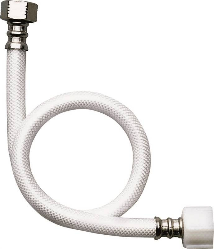 Exceptionally flexible, high strength, reinforced vinyl jacket. Extra-long stainless ferrules with radial crimp for more security. Non-toxic core resists chlorine and chloramines. Tightly sealed captive cone washers. Easy to grip, heavy-duty, nickel-plated, brass hex nuts. Meets IAPMO standard, SBCCI, CSA, NSF-61-9, A112.18.6 and UPC.