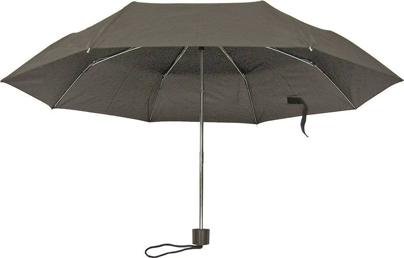 100 per cent nylon. Plastic handle with metal shaft and 8 rib construction. Nylon cover Included.