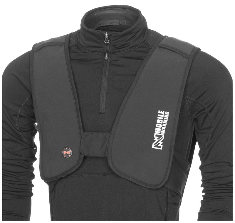 Add heat to any garment features same heating technology found in Mobile Warming jackets and vests; stretch side panel creates perfect fit; integrated touch-button control on garment for easy temperature setting; featuring 3 heated panels. Includes 7.4V 2.2Ah lithium-ion battery and standard charger. Color: Black.