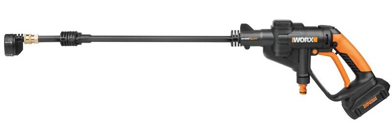 The Hydroshot powered water nozzle has 2 speeds: (1) 58to 94 psi for watering shrubs and other plants and (2) 200 to 300 psi for power cleaning. You can adjust the spray head pattern to fit your needs. Powered by a 20 volt MaxLithium battery. Includes the extension wand.
